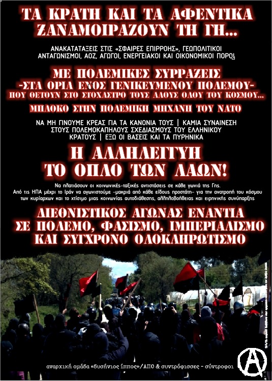 Από τις ΗΠΑ μέχρι το Ιράν να αγωνιστούμε -μακριά από κάθε είδους προστάτη- για την ανατροπή του κόσμου των κυρίαρχων και το χτίσιμο μιας κοινωνίας αυτοδιάθεσης, αλληλοβοήθειας και ειρηνικής συνύπαρξης