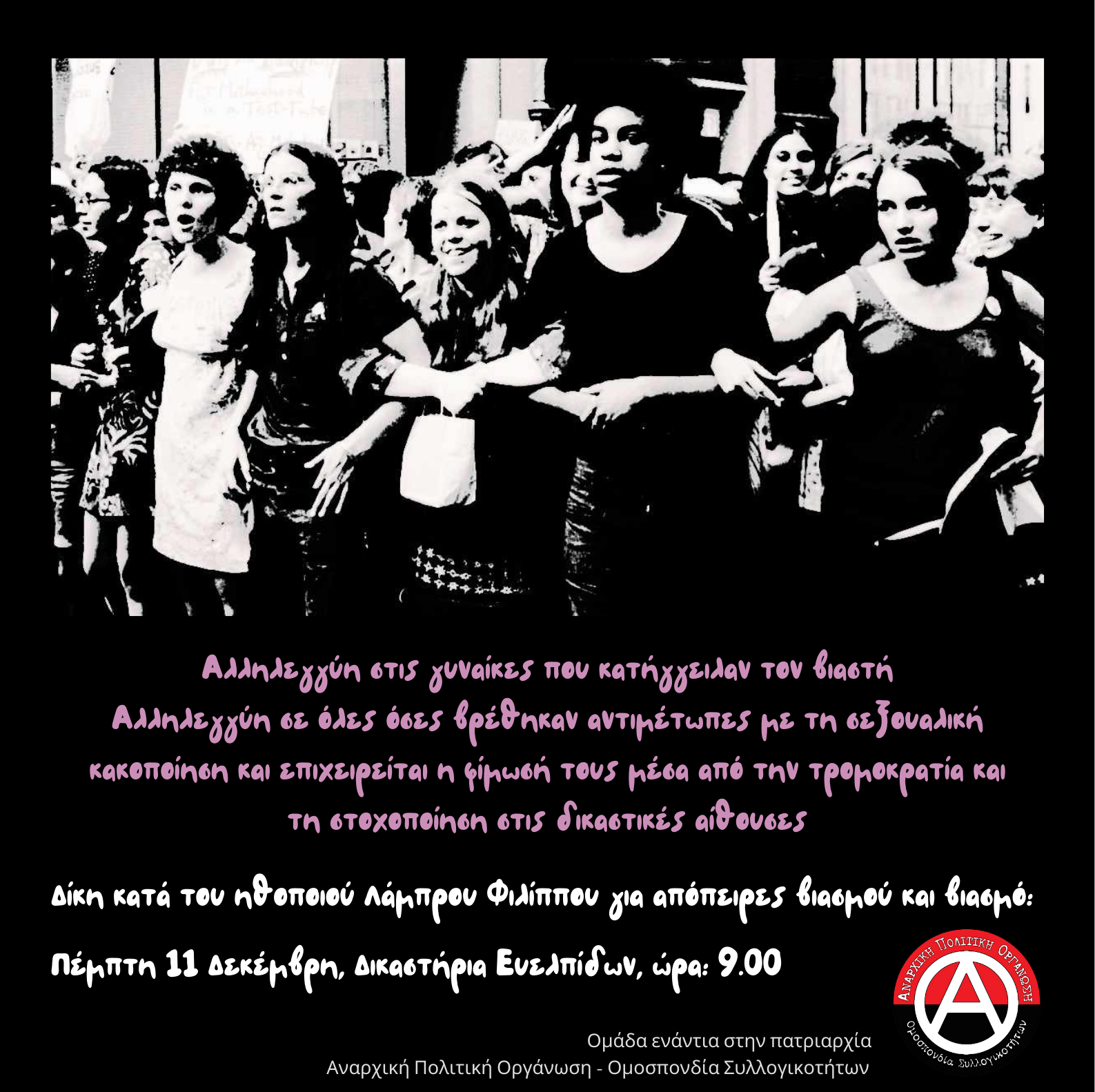 Αλληλεγγύη στις γυναίκες που κατήγγειλαν τον βιαστή