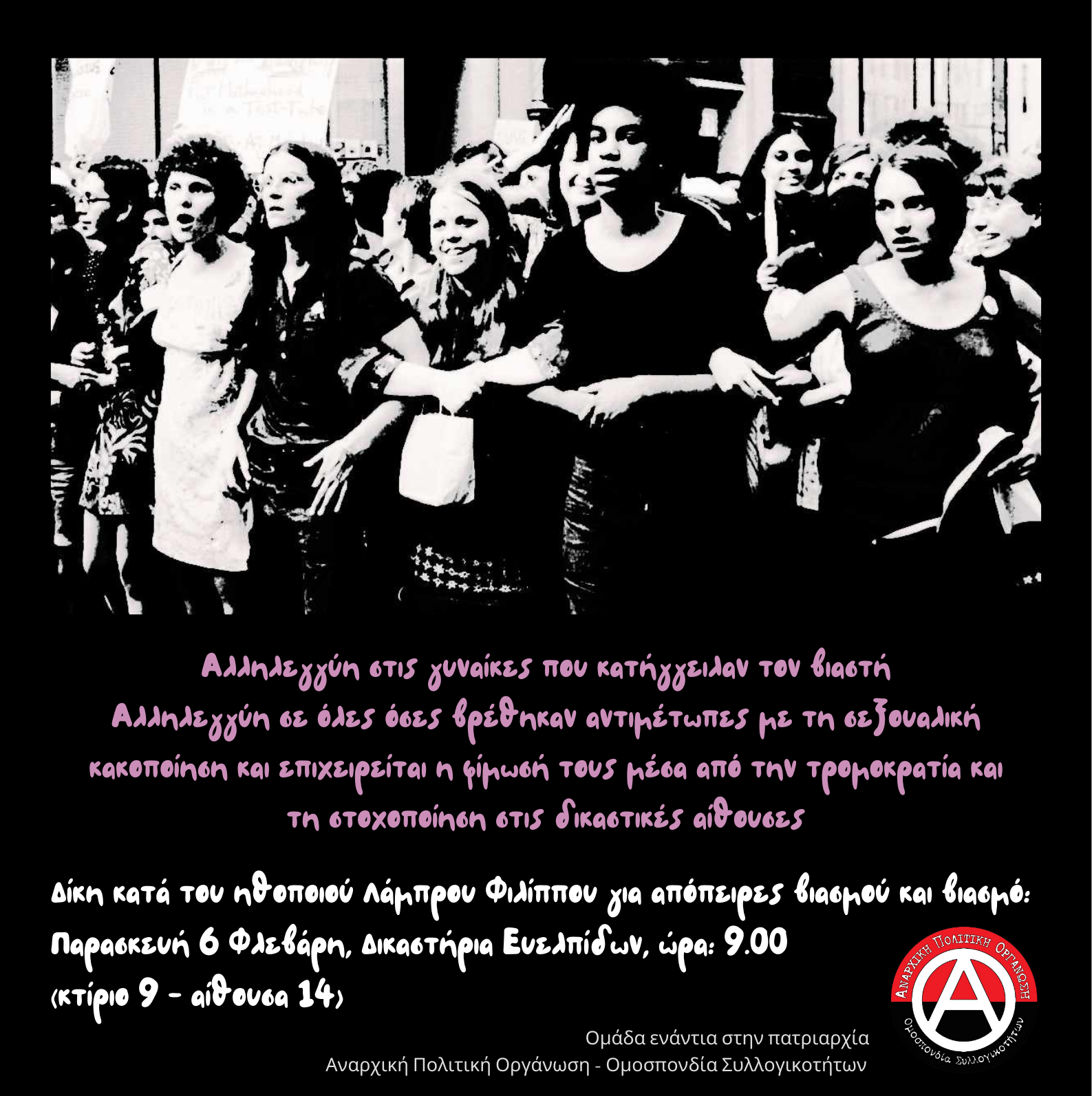 Αλληλεγγύη στις γυναίκες που κατήγγειλαν τον βιαστή