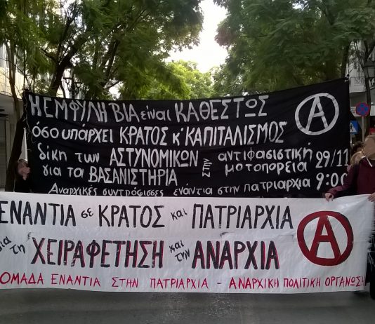 Το Σάββατο, 10 του Σεπτέμβρη, με αφορμή την ημέρα έναρξης της Διεθνούς Έκθεσης Θεσσαλονίκης, πραγματοποιήθηκε πορεία ενάντια στην κρατική και καπιταλιστική βαρβαρότητα, με συμμετοχή και του μπλοκ της Αναρχικής Πολιτικής Οργάνωσης (Ομοσπονδία Συλλογικοτήτων).