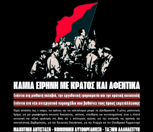 ΟΡΓΑΝΩΣΗ ΚΑΙ ΑΓΩΝΑΣ ενάντια στον πόλεμο, το φασισμό, τον εθνικισμό, τη φτώχεια, τη μισθωτή σκλαβιά, την πατριαρχία, την καταστολή, την καταστροφή και...