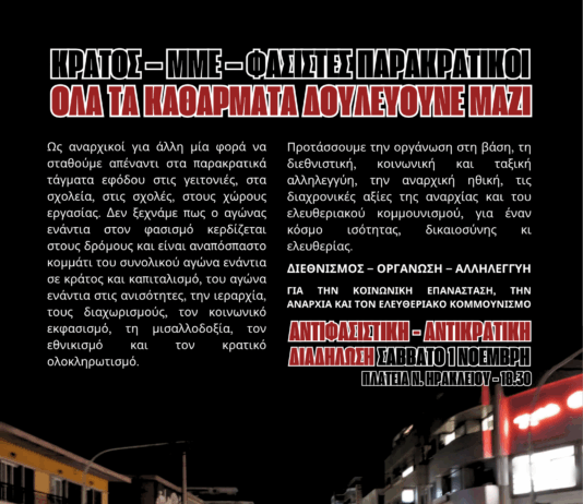 ![[Αθήνα] Θάνατος στον φασισμό, το κράτος & τον καπιταλισμό | Αντιφασιστικές – αντικρατικές κινητοποιήσεις 31/10 και 1/11/25](https://apo.squathost.com/wp-content/uploads/2025/10/1-noemvri-2025_ts_athinas_apo-534x462.png)