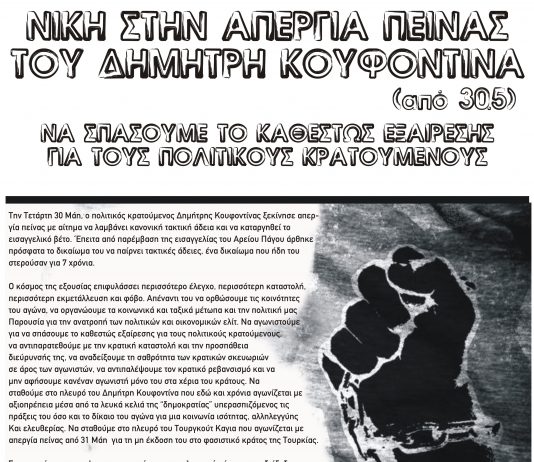 Ανακοινώσεις αλληλεγγύης στον απεργό πείνας Δ. Κουφοντίνα