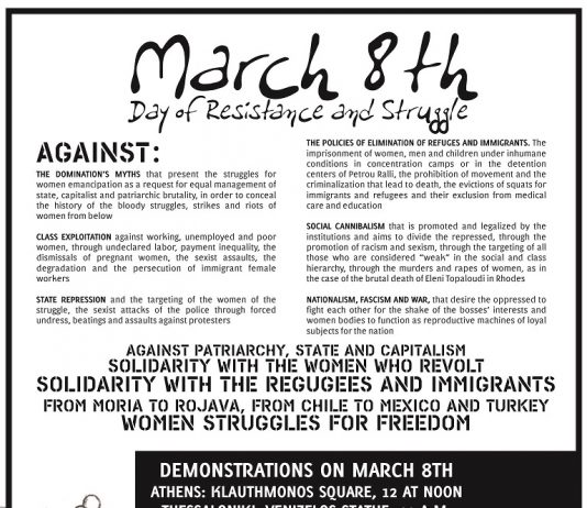 On Wednesday 8/3,we participated in the mobilizations related to the "International Women's day", in the cities of Athens, Thessaloniki and Patra. The convenient for the dominion myths, that distort the cause of women’s emancipation...