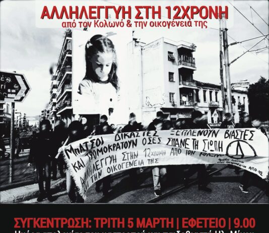 ![[Αθήνα] Συγκέντρωση αλληλεγγύης στη 12χρονη από τον Κολωνό, τη μητέρα & τα αδέρφια της](https://apo.squathost.com/wp-content/uploads/2024/03/kolonos_eisaggeliki-protasi-324x235.jpg)
