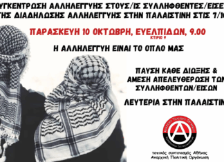 [Αθήνα] Συγκέντρωση αλληλεγγύης στους/ις συλληφθέντες/είσες της διαδήλωσης αλληλεγγύης στην Παλαιστίνη στις...