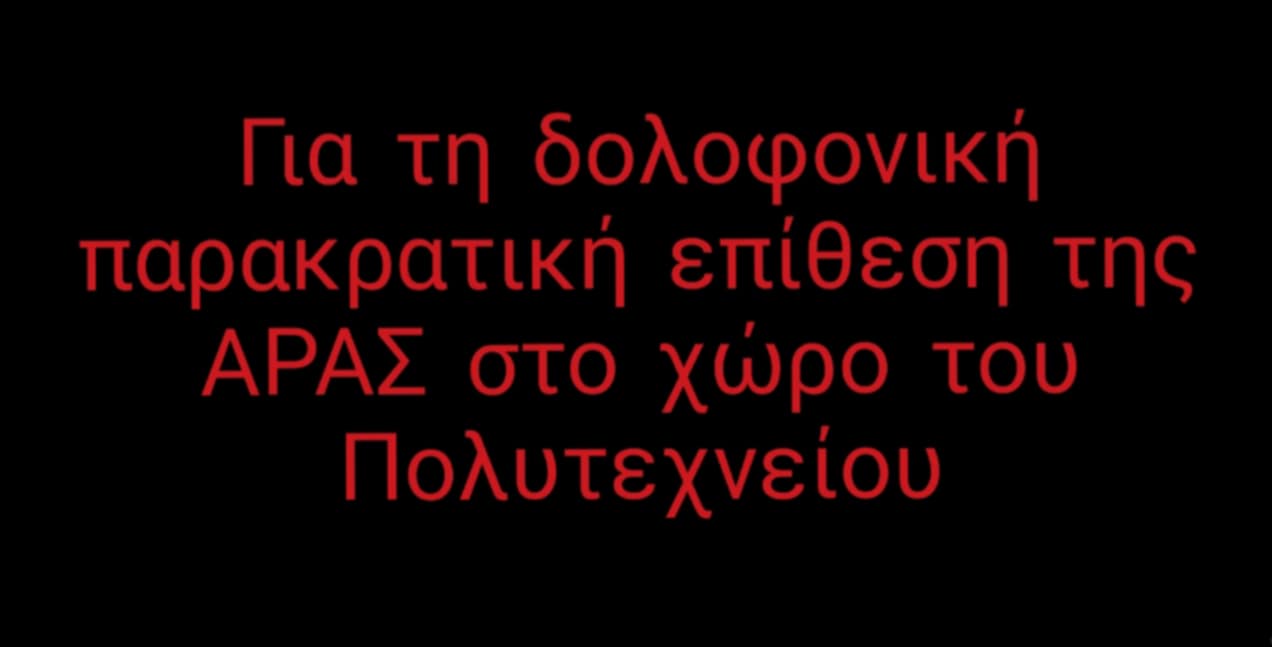 ΓΙΑ ΤΗ ΔΟΛΟΦΟΝΙΚΗ ΠΑΡΑΚΡΑΤΙΚΗ ΕΠΙΘΕΣΗ ΤΗΣ ΑΡΑΣ ΣΤΟ ΧΩΡΟ ΤΟΥ ΠΟΛΥΤΕΧΝΕΙΟΥ