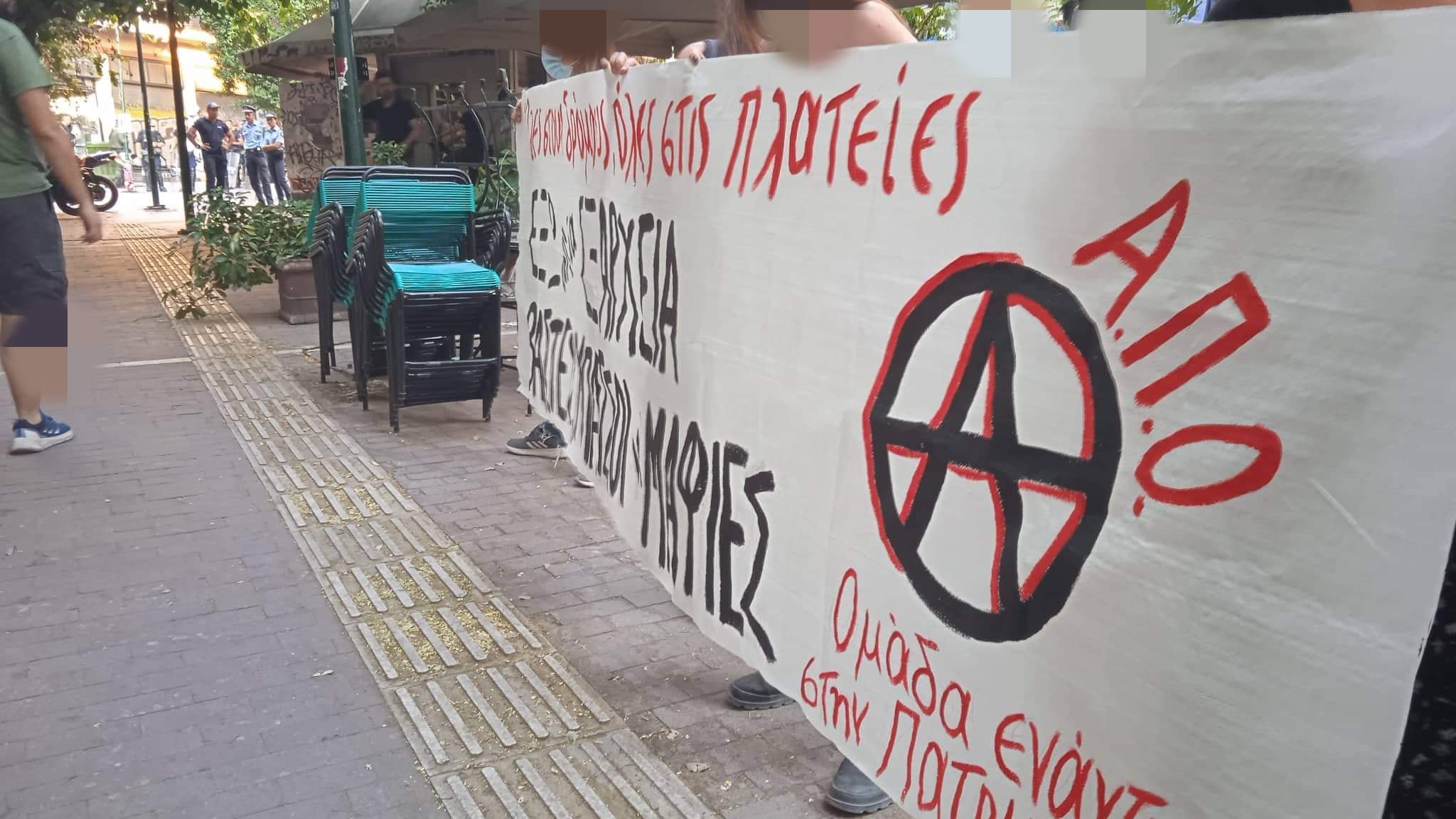 Την Παρασκευή 22/7, μιάμιση ώρα πριν την καλεσμένη συγκέντρωση ισχυρές αστυνομικές δυνάμεις όλων των ειδών (ΜΑΤ, ΔΡΑΣΗ, ΟΠΚΕ και εντέλει και ΕΚΑΜ) στρατοπεδεύουν περιμετρικά της πλατείας και στα γύρω στενά. Συντρόφισσες και αλληλέγγυοι συγκεντρωνόμαστε στην πλατεία και ο κόσμος σταδιακά πληθαίνει. Διαβάζονται ανακοινώσεις στη μικροφωνική, φωνάζονται συνθήματα, μοιράζονται κείμενα.