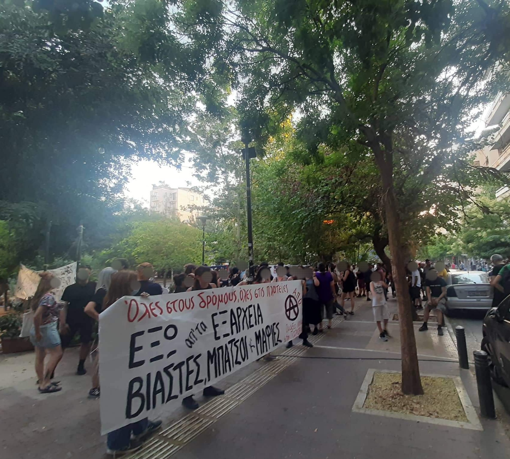 Την Παρασκευή 22/7 υπήρχε καλεσμένη συγκέντρωση στην πλατεία Εξαρχείων – με πρωτοβουλία των «Συντροφισσών ενάντια στην πατριαρχία και την έμφυλη βία» και στη συνέχεια από την «ομάδα ενάντια στην πατριαρχία» της ΑΠΟ, τον φεμινιστικό τομέα Ρουβίκωνα, τη Sabbat και άλλες συλλογικότητες – ενάντια σε απόπειρες βιασμού που σημειώθηκαν στην περιοχή το προηγούμενο διάστημα. Συγκεκριμένα, την Πέμπτη 14/7 στη οδό Ψελλού, κάτω από τον λόφο του Στρέφη, γυναίκα δέχτηκε επίθεση από δύο άντρες που τη λήστεψαν, την ξυλοκόπησαν άγρια και στη συνέχεια επιχείρησαν να τη βιάσουν, κάτι που ευτυχώς αποτράπηκε και με τη βοήθεια των κατοίκων της γειτονιάς που άκουσαν τις φωνές της. Ο ένας εκ των δύο δραστών αναγνωρίστηκε από τη γυναίκα και πιάστηκε με τη βοήθεια περαστικού και ο δεύτερος διέφυγε προς τον λόφο του Στρέφη, με χαρακτηριστική την αδιαφορία της αστυνομίας να τον αναζητήσει, ενώ πολυάριθμες δυνάμεις της στρατοπεδεύουν στα Εξάρχεια στοχεύοντας αγωνιστές. Στο Α.Τ. Εξαρχείων η γυναίκα, που πήγε για να καταγγείλει τη ληστεία, τον ξυλοδαρμό και την απόπειρα βιασμού που είχε υποστεί, δέχτηκε την απαξία και τις προσβολές από την αστυνομία, ενώ το μαρτύριό της συνεχίστηκε στο νοσοκομείο του Ευαγγελισμού όπου αναγκάστηκε να παραμείνει για ώρες αναμένοντας να έρθει ιατροδικαστής να την εξετάσει.