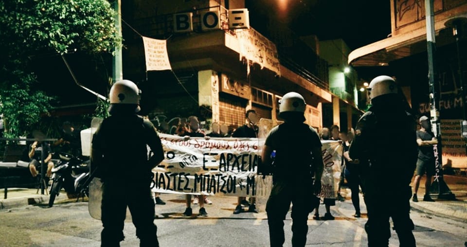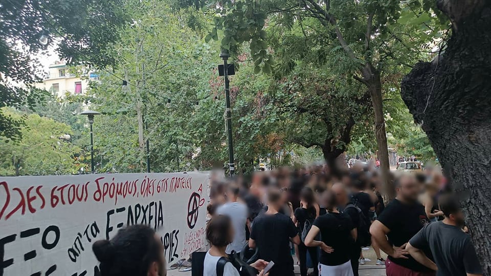 Η προχτεσινή συγκέντρωση ήταν καλεσμένη μέσα σε ένα περιβάλλον όξυνσης του ανταγωνισμού μεταξύ των δολοφόνων που κυβερνούν και εκείνης της κοινωνίας που αντιστέκεται. Μέσα σε συνθήκες οργής για τη γενικευμένη πατριαρχική, ταξική και κρατική βία που στηρίζεται και συγκαλύπτεται από τους θεσμούς (με την αποφυλάκιση του παιδοβιαστή Λινγάδη και του βιαστή Φιλιππίδη, με τους μπάτσους δολοφόνους του Ζακ να αθωώνονται και τους Χορταριά-Δημόπουλο να κυκλοφορούν ελεύθεροι, με τον Κορκονέα να αποφυλακίζεται, τους βιαστές της Γεωργίας να απαλλάσσονται με δικαστικό βούλευμα, την ίδια στιγμή που τα θύματα βιασμών διαπομπεύονται στις δικαστικές αίθουσες και στα ΜΜΕ). Μέσα στις μέρες που κορυφώνεται η απεργία πείνας του αναρχικού Γιάννη Μιχαηλίδη, η ζωή του οποίου κινδυνεύει πλέον άμεσα, με την εκδικητική παράταση της φυλάκισής του ενώ έχει συμπληρώσει τον προβλεπόμενο χρόνο της ποινής του, ενώ την Πέμπτη 21/7 η αστυνομία είχε περικυκλώσει και επιχείρησε επίσης να απαγορεύσει την πορεία αλληλεγγύης στο κέντρο της Αθήνα. Την ίδια στιγμή συνεχίζεται το σχέδιο καταστολής των κατειλημμένων χώρων αγώνα, με την εκκένωση της κατάληψης 111 στη Θεσσαλονίκη, το τελεσίγραφο στη κατάληψη Παλαιού Νεκροτομείου στην Αλεξανδρούπολη, και τη διαρκή απειλή που υφίστανται όλες οι καταλήψεις, βρισκόμενες πάγια στο στόχαστρο της αντιεξεγερτικής εκστρατείας του κράτους. Μετανάστες και πρόσφυγες δολοφονούνται στα σύνορα με την πρακτική των pushbacks του ελληνικού κράτους, και ταυτόχρονα ζούμε για άλλη μια φορά την φρίκη της καταστροφής και λεηλασίας της φύσης, που αφήνει πίσω της καμένη γη, καρβουνιασμένα δέντρα, ζώα και σπίτια, με δάση να καίγονται σε όλη τη χώρα, και τους δημόσιους πράσινους χώρους μέσα στην πόλη να παραδίνονται στην ιδιωτικοποίηση και την εμπορευματοποίηση για να μετατραπούν σε ζώνες καπιταλιστικής κερδοφορίας, καταστολής και ελέγχου. (πλατεία Εξαρχείων, λόφος Στρέφη, πάρκο Κύπρου και Πατησίων, κτήμα Δρακόπουλου κ.α.). Αυτό είναι λοιπόν το περιβάλλον μέσα στο οποίο το κράτος προχωρά στη απαγόρευση διαδηλώσεων.