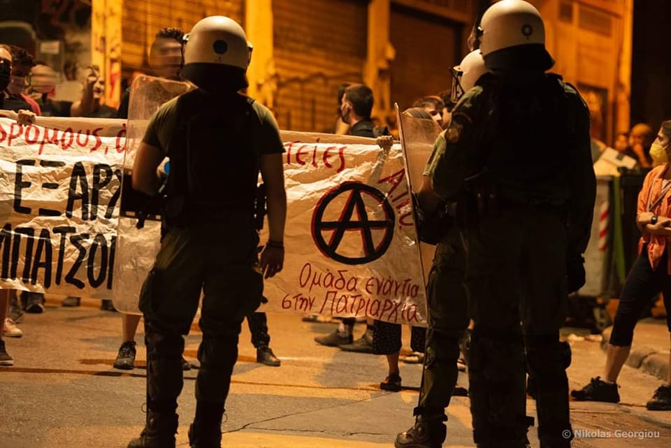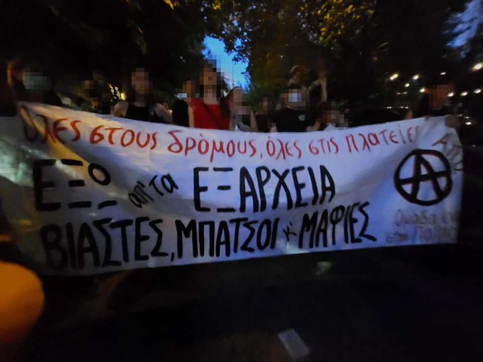 Δεν είναι η πρώτη φορά που σημειώνονται τέτοια γεγονότα, σε μια περιοχή που οι ναρκομαφίες σε άμεση συνεργασία με την αστυνομία επιχειρούν να επιβάλλουν συνθήκες κοινωνικού κανιβαλισμού, χέρι-χέρι με την κρατική καταστολή και τις στοχεύσεις της. Και δεν είναι η πρώτη φορά που ως γυναίκες και ως αναρχικές κατεβαίνουμε στον δρόμο στήνοντας αναχώματα στην έμφυλη βία και τις σεξιστικές επιθέσεις της αστυνομίας, όπως είχε γίνει με τις δύο διαδηλώσεις το 2019, απέναντι σε βιασμούς καθώς και απέναντι στην αστυνομική κατοχή των Εξαρχείων, όταν στρατοπεδευμένες διμοιρίες παρενοχλούσαν καθημερινά γυναίκες και κορίτσια που ζουν, εργάζονται, συχνάζουν και αγωνίζονται στην περιοχή.