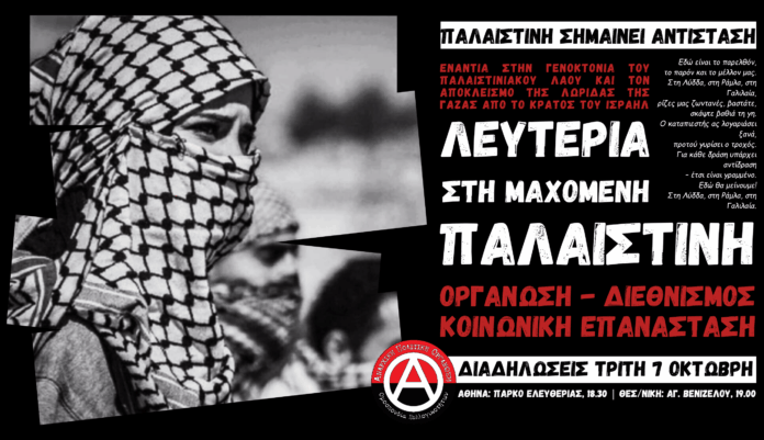 Ενάντια στην γενοκτονία του παλαιστινιακού λαού και τον αποκλεισμό της Λωρίδας της Γάζας από το κράτος του Ισραήλ