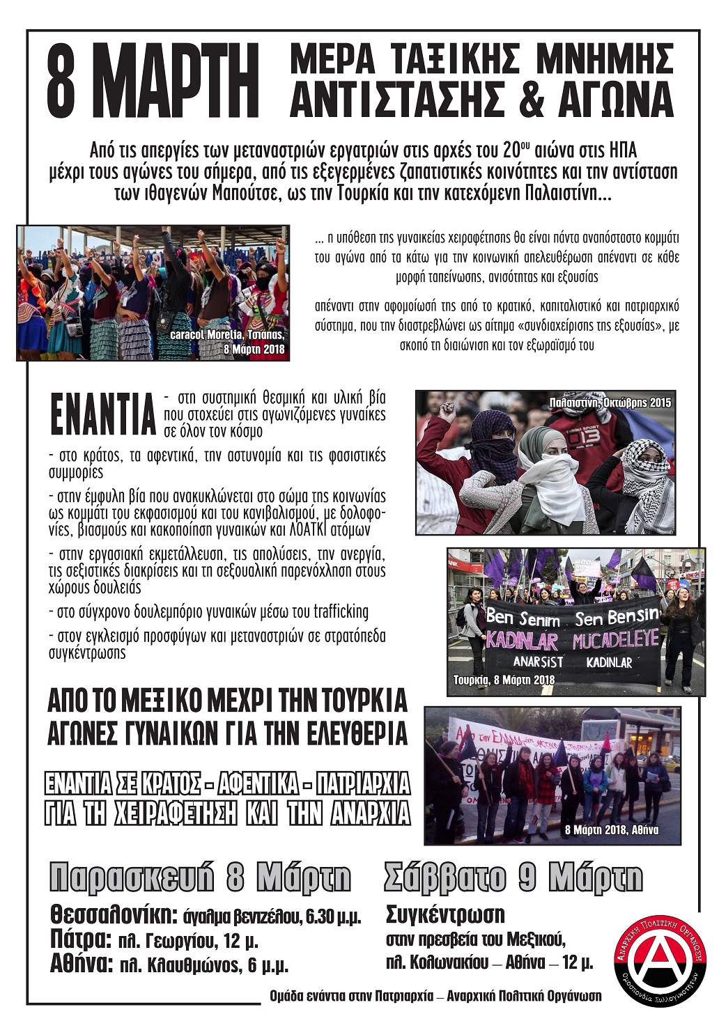 Photographs & Posters from the demonstrations by the 8th of March in Athens, Patras and Thessaloniki | Group Against Patriarchy – Anarchist Political Organization (Greece)