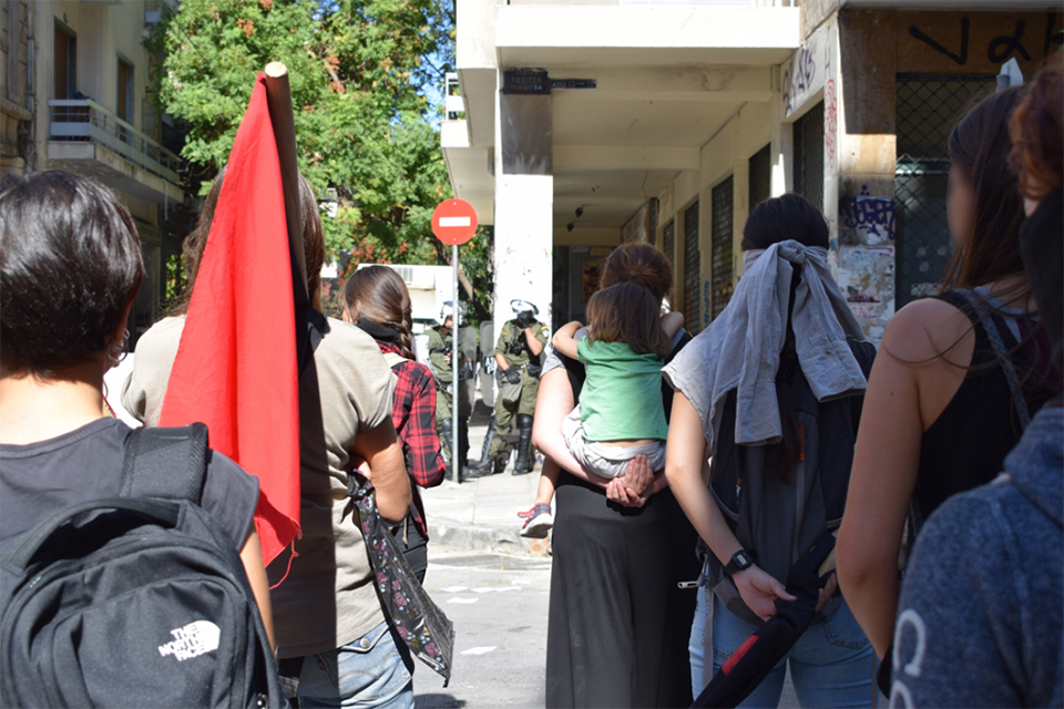Since the summer, the state has been attacking the squats and it has evacuated dozens of sites. Some of these are squats which house refugees and immigrant women, women, children and men, coming from war zones, from Syria, from Afghanistan, from Iraq, from countries in Africa, people who have managed to cross the bloody border of Fortress Europe. In dawn, armored police officers enter the buildings, which solidarity has turned into self-organized areas of life, and arrest people, piles them in police vans, and takes them to concentration camps, where they are intended to be locked up, behind barbed wire, in appalling conditions and where very often lurks death. Recently Taryye Faryk from Afghanistan died in Moria camp, surrounded by flames, and a baby sleeping in a cardboard box was killed under the wheels of a truck. Refugee children who lived in the squats are forcefully removed from the schools they attended, their toys are thrown in trash by the police and municipal employees, the women and men who lived there are once again uprooted to become invisible.