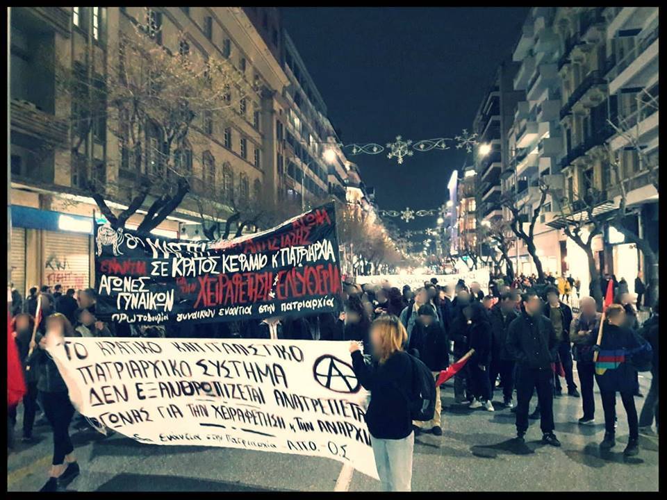 We must also tell you that, as part of this repressive campaign, entire areas are under constant police occupation. In the neighborhood of Exarheia, in Athens, riot platoons have been installed on a permanent basis, terrorizing residents and engaging in sexist threats and attacks on girls and women who live and move around the area. Platoons march as intruders and occupants on the streets, outside homes, cafes and venues, polluting our days and nights with the sound of their boots and radio, imposing the militarization of daily life. Sexual harassment is a methodical practice and a tool for consolidating this treaty. On our way home, work or school, when we are going to assemblies or just walking, an attempt is being made to impose a treaty where we are obliged to pass in front of uniformed thugs to supervise our movements, to comment on our looks, to abuse in a sexist way, to move towards us, to monitor our paths, to intimidate and frighten us. At the same time, they attack those who are resisting state repression, using sexist violence methodically as a means of humiliation and discipline. A violence that seeks to punish and bring up women who, as such, have chosen to rise up. Their sexist and homophobic attacks on women and men, including the practice of undressing detainees and beating them naked even in public, carrying out virtual rapes against demonstrators, attempting in every way to attack the dignity and physical integrity of the combatants, are tools in the attempt to dominate the state, para-state, capitalist and patriarchal brutality.