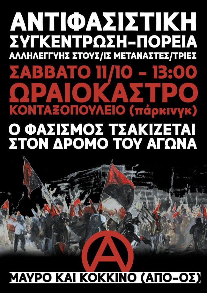 Αντιφασιστική συγκέντρωση – πορεία: Σάββατο 11/10, Ωραιόκαστρο – Κονταξοπούλειο (πάρκιγνκ), 13.00