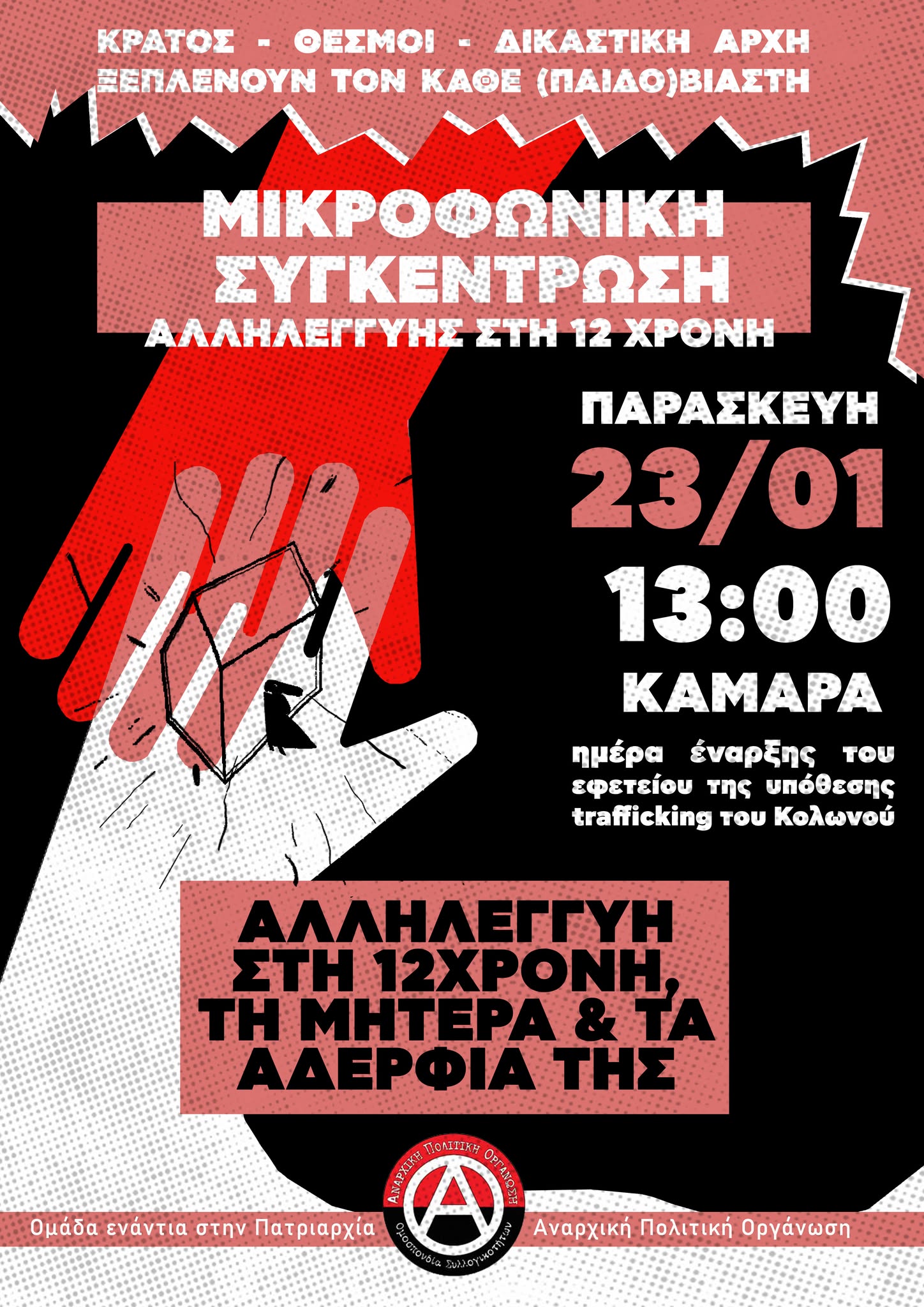 Απέναντι στις κρατικές μεθοδεύσεις, η αλληλεγγύη και οι αγώνες μας έχουν τη δύναμη να ανατρέπουν κρατικούς σχεδιασμούς. Αυτό αποδείχθηκε περίτρανα στην πρώτη δίκη, όπου τόσο η κατασκευή της ενοχής της μητέρας όσο και η απόπειρα να απαλλάξουν τον Μίχο κατέρρευσαν χάρη στις δυναμικές κινητοποιήσεις που εκδηλώθηκαν, χάρη στην έκφραση μιας κοινωνικής οργής και της αλληλεγγύης προς το 12χρονο κορίτσι και τη μητέρα, χάρη στις φωνές που ενώθηκαν λέγοντας ότι δεν είναι μόνες και ότι το κράτος ξεπλένει τους βιαστές.