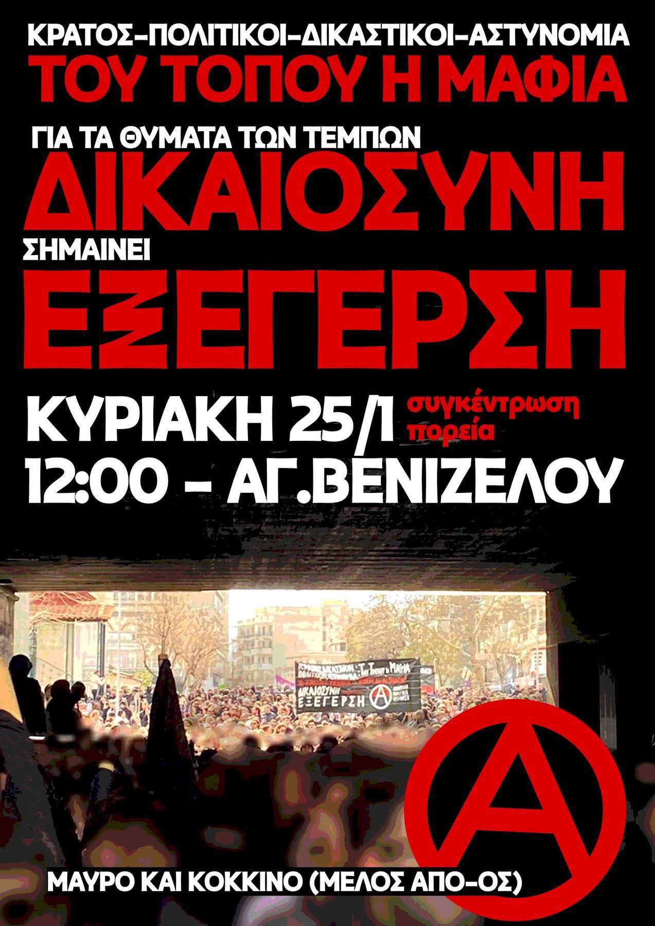 ΣΤΟΥΣ ΔΡΟΜΟΥΣ ΓΙΑ ΤΟ ΚΡΑΤΙΚΟ-ΚΑΠΙΤΑΛΙΣΤΙΚΟ ΕΓΚΛΗΜΑ ΤΩΝ ΤΕΜΠΩΝ – ΟΡΓΑΝΩΣΗ ΚΙ ΑΓΩΝΑΣ ΓΙΑ ΤΗΝ ΑΝΑΡΧΙΑ δηλαδή για μια κοινωνία δικαιοσύνης και πανανθρώπινης αλληλεγγύης απέναντι στο σημερινό καθεστώς ζούγκλας και καθολικής ανομίας.